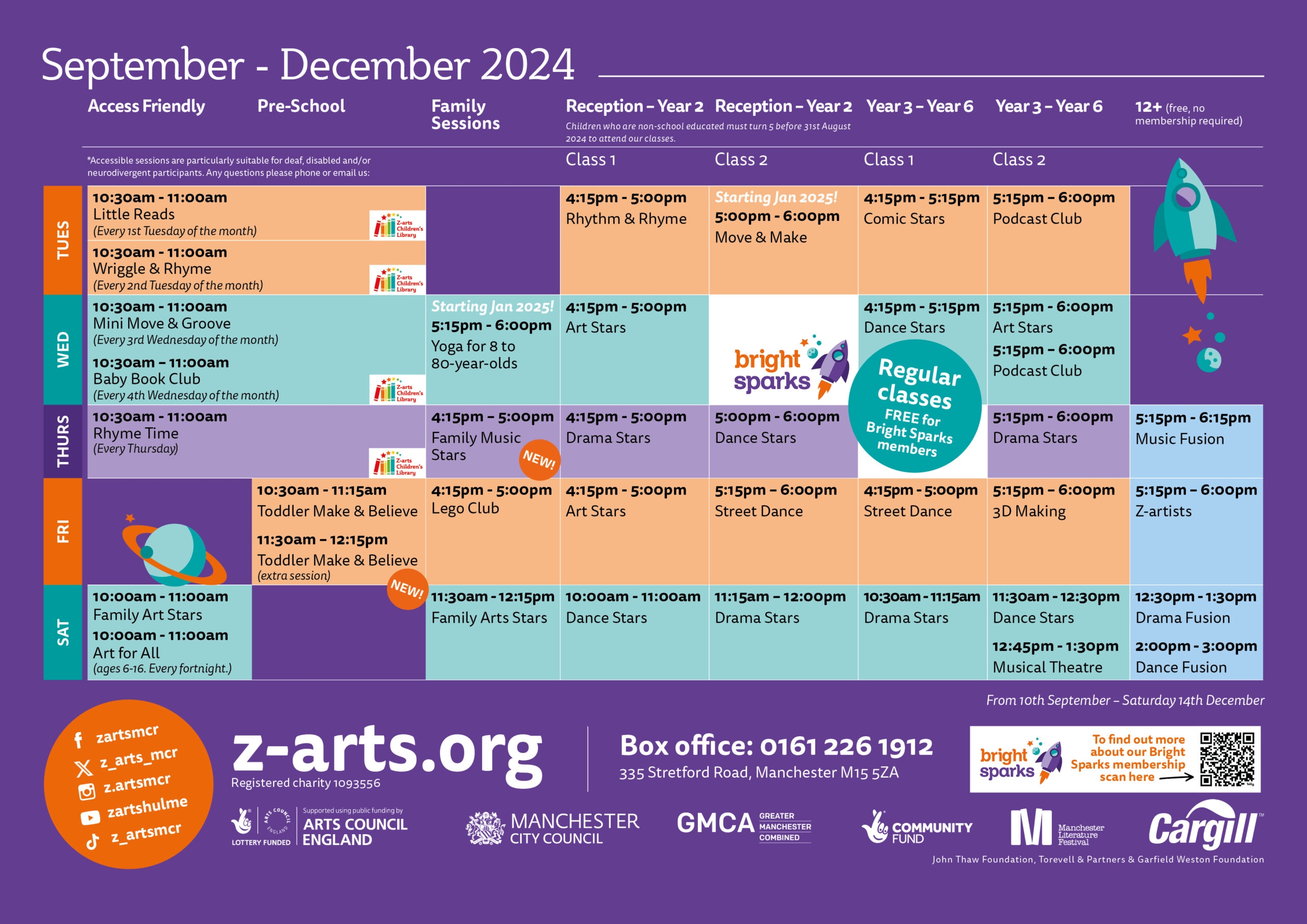 If you would to renew or join us, please email boxoffice@z-arts.org or give us a ring on 0161 226 1912, we love a chat. Or you can pop into our building and grab a form to get signed up!
